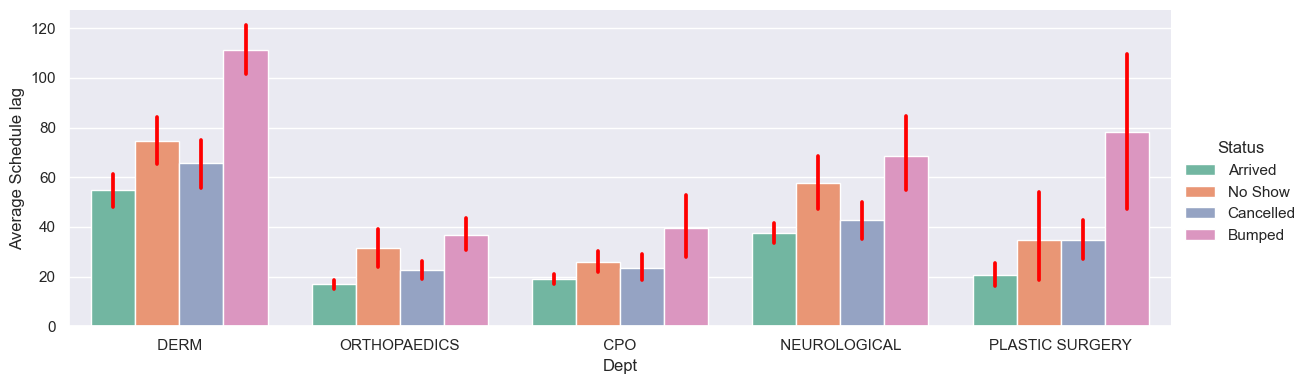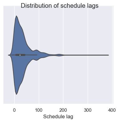 g.set_xlabels("Schedule lag") # You can tweak these plots using built in methods.