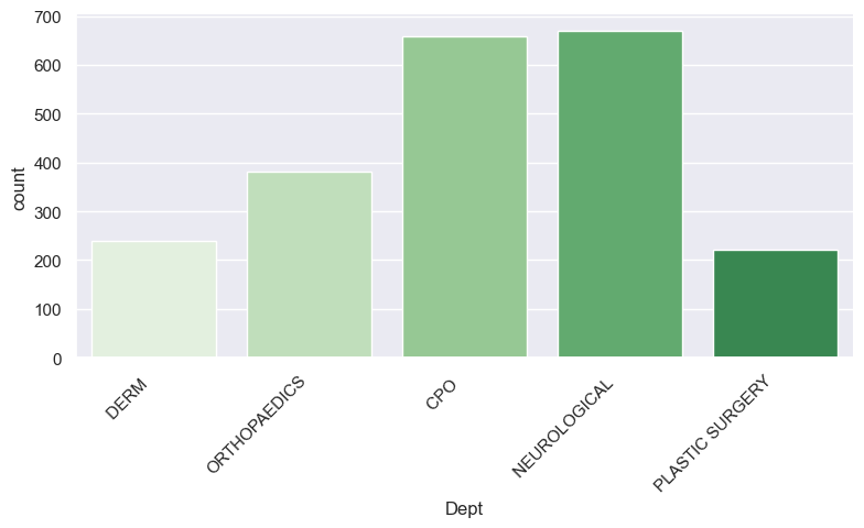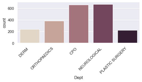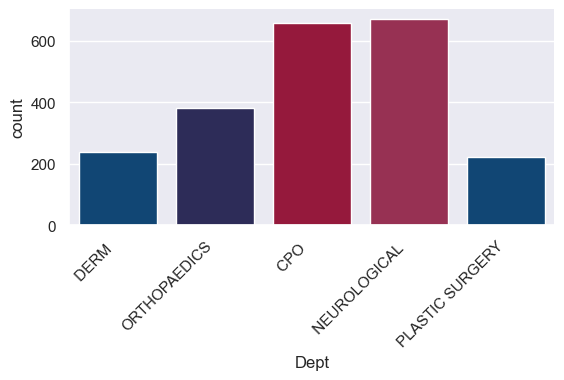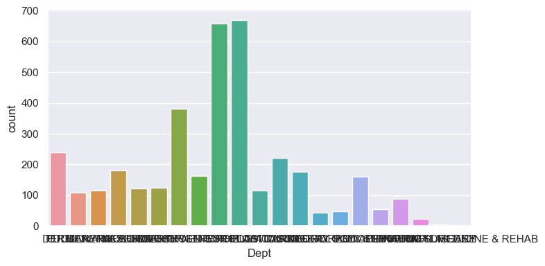 g = sns.catplot(x='Dept', kind="count", palette=custom_palette, data=new_dept, height=4, aspect=2)