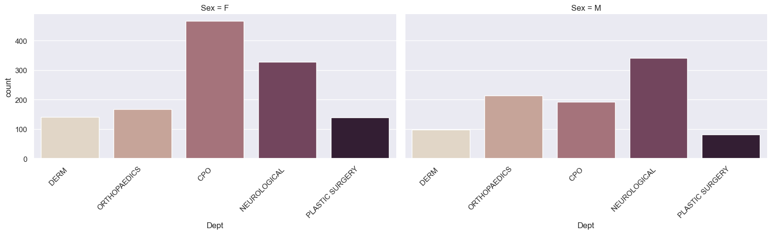 g = sns.catplot(x='Dept', kind="count", palette="ch:.25", data=new_dept,