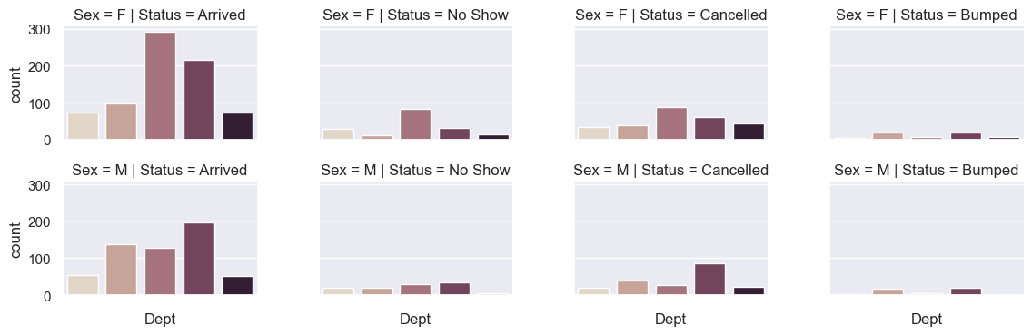 row = 'Sex', col="Status", height=2, aspect=1.5) # Note the 'col' argument.